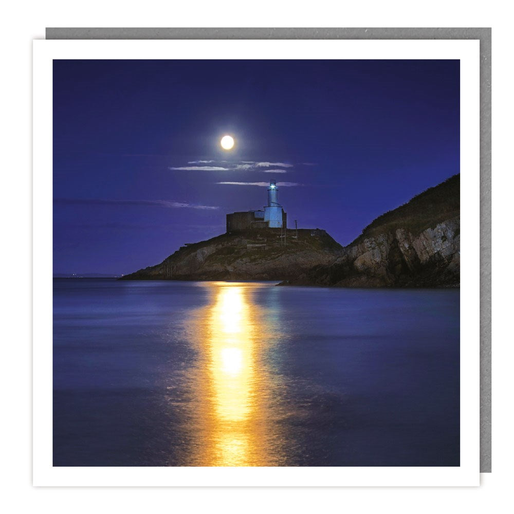 Moonlit Mumbles Lighthouse, Swansea, Wales